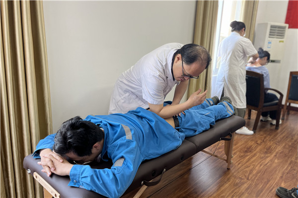 隨后,專家團(tuán)隊(duì)針對(duì)婦科疾病、甲狀腺問題、慢性病管理、中醫(yī)調(diào)理等健康需求一對(duì)一進(jìn)行解答,并免費(fèi)提供血壓、血糖測(cè)量及體重評(píng)估服務(wù)。康復(fù)科專家通過針灸、推拿等中醫(yī)理療技術(shù)體驗(yàn),為員工緩解肩頸腰腿疼痛、疲勞失眠等亞健康問題。