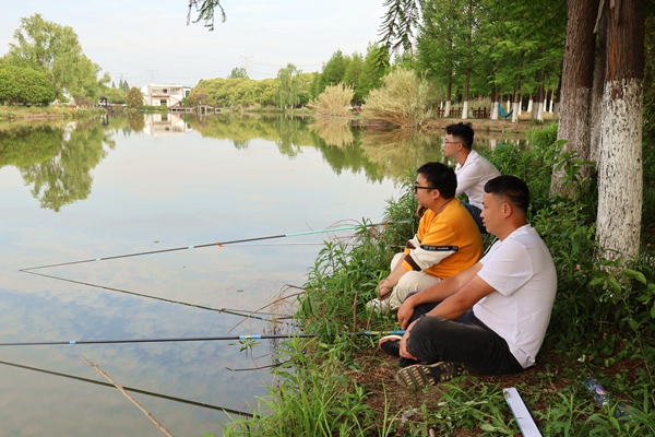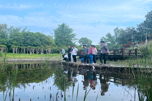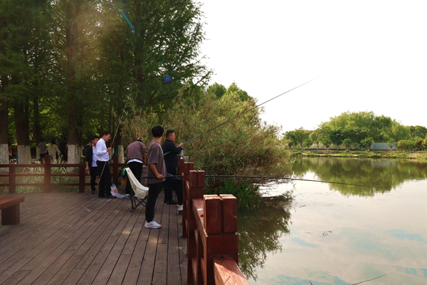 春天的西廬濕地公園草木豐茂、綠意盎然,到處氤氳著繁花和新苗的芳香。大家三五成群,或是漫步在林蔭道上,沐浴著透過(guò)香樟葉灑下來(lái)的稀松陽(yáng)光;或是綁一個(gè)吊椅,欣賞著水杉林與藍(lán)天碧水構(gòu)成的美麗油畫;釣魚小分隊(duì)拎著裝備直奔河邊,尋找最佳釣位;水塘邊,大家用樹(shù)枝、細(xì)繩制作了簡(jiǎn)易的工具,一場(chǎng)小龍蝦PK賽拉開(kāi)序幕,引來(lái)眾多圍觀群眾。