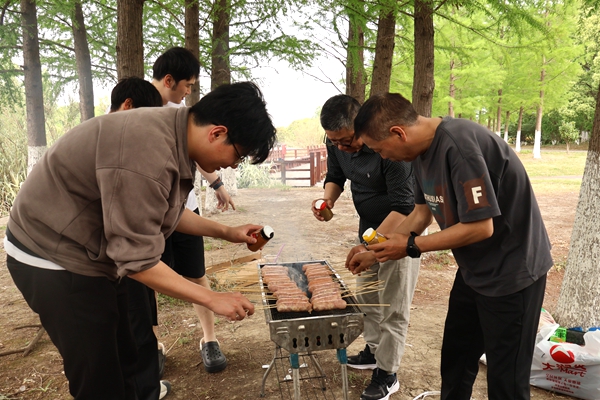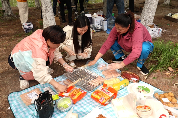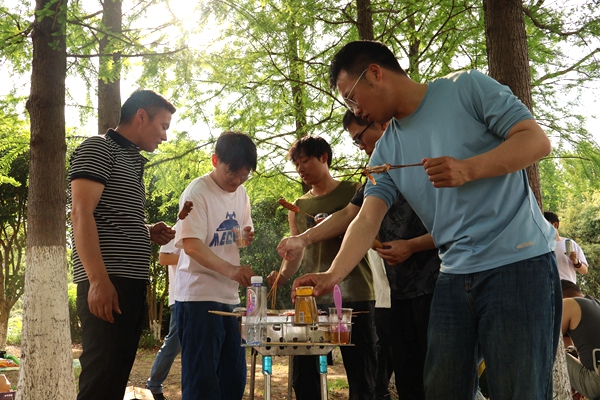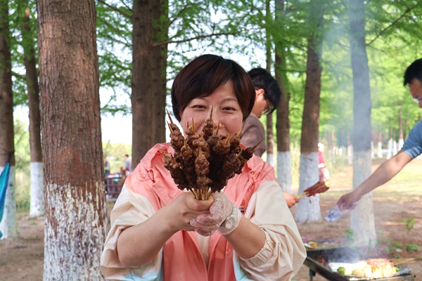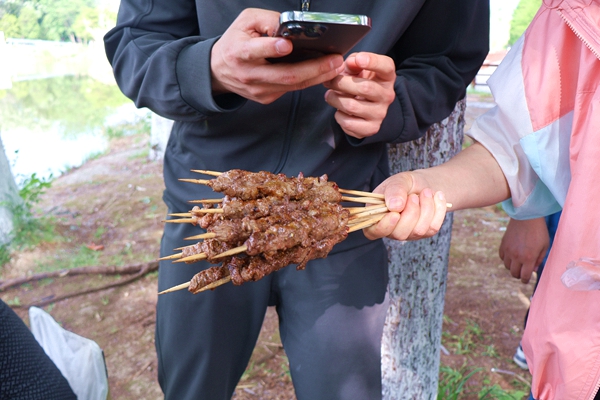 鯽魚、白條、小龍蝦都已就位,燒烤露營(yíng)還能缺席?!心靈手巧的小伙伴們火速鋪好餐墊、串好食材、搭好烤架,“胡記燒烤”、“小高串串”、“阿武鐵板燒”等“五星商家”紛紛上線,為大家?guī)?lái)了一場(chǎng)飽腹盛宴。