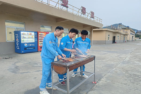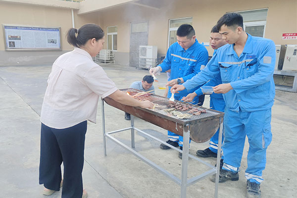 當(dāng)體育競(jìng)技的激情慢慢消散,一場(chǎng)溫馨的煙火氣為活動(dòng)增添了別樣的溫情。4月29日晚,本次活動(dòng)的壓軸環(huán)節(jié)職工自助燒烤盛宴在廣英水泥食堂廣場(chǎng)溫馨開啟。辦公室提前備足食材,精心布置場(chǎng)地,職工及家屬圍坐燒烤架旁,親手烤制美食,共享勞動(dòng)成果?,F(xiàn)場(chǎng)香氣四溢,歡聲笑語不斷,職工們暢談工作與生活,氛圍輕松融洽?;顒?dòng)還特別為參與者準(zhǔn)備了飲料、水果及零食,為節(jié)日增添了一份甜蜜與溫情。