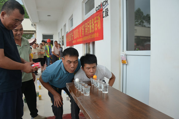 吹乒乓球過水杯項目同樣人氣爆棚。參賽者們鼓足腮幫子,小心翼翼地將乒乓球從第一個杯子吹向第六個杯子,眼睛緊緊盯著乒乓球,生怕它跳過杯子或滑落至桌子上。圍觀的司機們紛紛為參賽者加油助威,現場氣氛熱烈而歡快。?