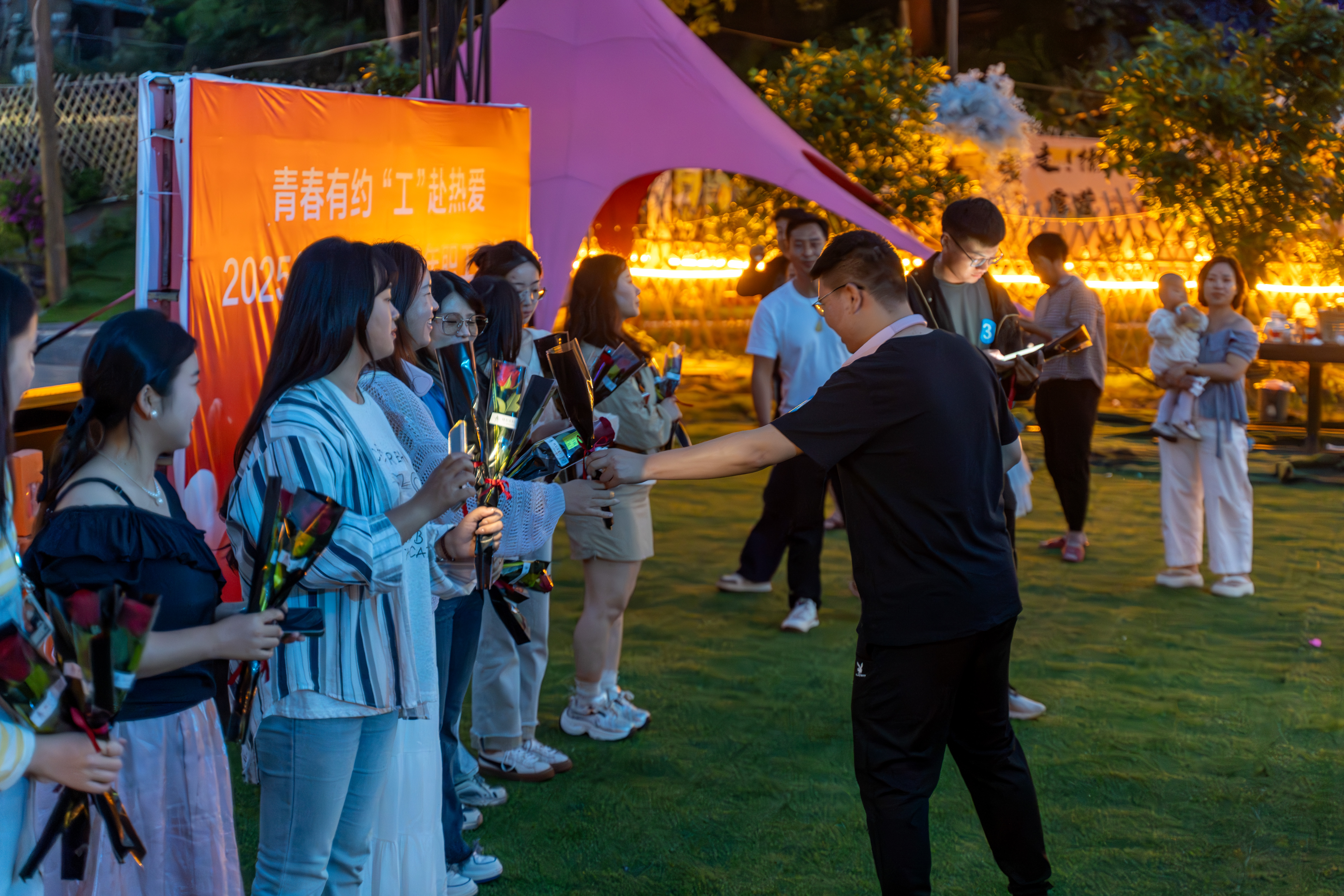 隨著活動推進,持續(xù)4個小時的歡樂互動,讓青年們從陌生走向熟悉。當“真心傳遞”環(huán)節(jié)到來時,現(xiàn)場氛圍達到高潮。男嘉賓們手捧嬌艷玫瑰,鼓起勇氣向心儀對象深情告白,眼中滿是真誠與期待。最終,4對嘉賓在眾人的祝福聲中甜蜜牽手,還有眾多互有好感的青年男女微笑著交換聯(lián)系方式,為未來埋下美好伏筆。