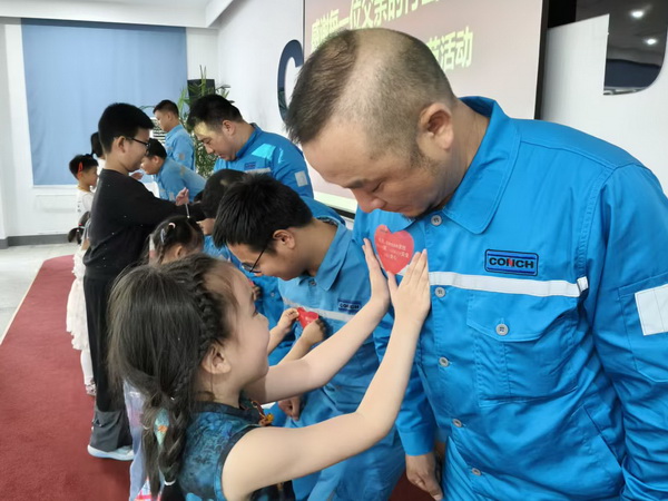 工廠還為每位爸爸準(zhǔn)備了“職場父親愛心勛章”,由孩子們親手為爸爸佩戴。制造分廠一名員工在收獲女兒的勛章以及親吻時(shí),頓時(shí)紅了眼眶,勛章上的暖心話語-“爸爸,您是全家的支柱,有您才有家,一定要注意安全,讓我們安心”,就是女兒沒有說出來的期盼。