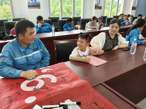 沉浸式體驗(yàn)爸爸的工作日常,走進(jìn)爸爸的“第二個(gè)家”。家屬們?cè)诠S講解員的帶領(lǐng)下,先后參觀了企業(yè)工廠廠史館、中控操作室以及安全實(shí)訓(xùn)基地。在廠史館,10歲的果果眼里寫滿新奇,“這是什么,那什么”問個(gè)不停,當(dāng)她發(fā)現(xiàn)工廠成長照片墻上爸爸的身影時(shí),興奮著指給旁邊的媽媽看;在心肺復(fù)蘇假人模擬操作環(huán)節(jié),8歲的小小男子漢大樹在爸爸的手把手教學(xué)下,一邊數(shù)著“1、2、3……”一邊認(rèn)真地給假人模型做按壓式心肺復(fù)蘇。這種沉浸式體驗(yàn)不僅讓孩子們觸摸到父親工作的溫度,還有對(duì)“爸爸為什么晚歸”的全新理解,更在稚嫩的心靈播下職業(yè)啟蒙的種子。