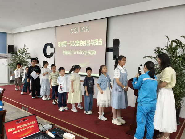 2025年6月15日,寧國水泥廠四樓大會(huì)議室內(nèi)氣氛溫馨又熱烈,一個(gè)小朋友在講臺(tái)上,向父親深情感恩告白,稚嫩的童音,一聲聲叮囑:“爸爸,今天是父親節(jié),您辛苦了,媽媽和我希望您注意身體,一定要注意安全,您是我們家的依靠,我愛您爸爸!”在父親節(jié)來臨之際,寧國水泥廠特別策劃“父親節(jié)家屬開放日活動(dòng)”,向每一位“職場爸爸”致敬,感恩每一位父親的付出與擔(dān)當(dāng)!活動(dòng)當(dāng)天,工廠邀請(qǐng)了20多名員工家屬走進(jìn)企業(yè),體驗(yàn)爸爸的日常工作,參與親子互動(dòng)游戲,領(lǐng)取暖心節(jié)日禮,共同見證“父親”這一角色在職場與家庭中的雙重光芒。