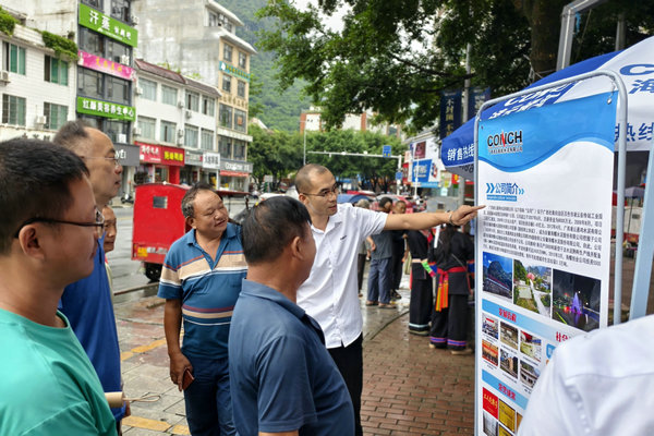 活動現(xiàn)場,鮮明的橫幅與精美的海報在雨中格外醒目,迅速抓住了過往行人的眼球。工作人員熱情地向圍觀的群眾發(fā)放定制宣傳手冊和單頁,圖文并茂地詳細展示了海螺水泥的各類產(chǎn)品信息。很快,銷售處與生產(chǎn)品質(zhì)處聯(lián)合派出的專業(yè)技術團隊便被市民們團團圍住。