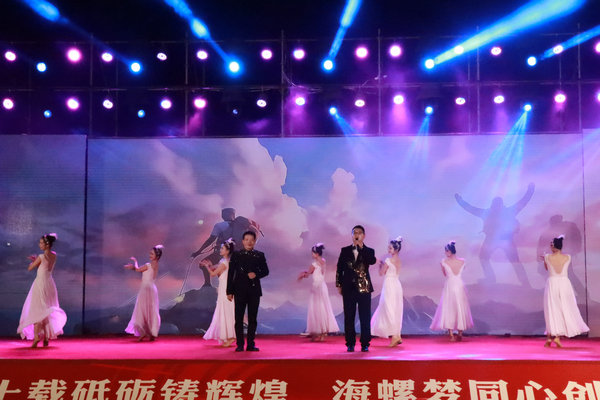 晚會(huì)在北流海螺主要負(fù)責(zé)人陳維保的致辭中拉開帷幕。節(jié)目內(nèi)容融合民族特色與現(xiàn)代藝術(shù),深情表達(dá)出海螺人對(duì)祖國的熱愛、對(duì)事業(yè)的堅(jiān)守以及對(duì)未來的美好期待。興安海螺帶來的《我愛你中國》傳遞出熾熱的愛國情懷;隆安海螺的民族舞蹈《節(jié)節(jié)高》以優(yōu)美舞姿象征水泥主業(yè)蒸蒸日上;凌云通鴻公司的《瑤鼓聲聲迎客來》以激昂鼓點(diǎn)展現(xiàn)民族團(tuán)結(jié)與開放胸襟;興業(yè)海螺的歌伴舞《壯志在我胸》抒發(fā)了海螺人投身實(shí)業(yè)、銳意進(jìn)取的豪情;扶綏海螺的一曲《倔強(qiáng)》唱出了攻堅(jiān)克難的堅(jiān)韌精神;興業(yè)海螺環(huán)保公司的詩朗誦《二十載征程筑夢(mèng) 綠動(dòng)海螺譜新篇》,呈現(xiàn)了公司在環(huán)保領(lǐng)域的持續(xù)探索與成就;廣西海螺環(huán)境科技有限公司的《Kpop舞蹈串燒》則展現(xiàn)出新材料產(chǎn)業(yè)蘊(yùn)含的創(chuàng)新活力;北流海螺員工自編自演的三句半《海螺情、海螺頌》,深情講述了海螺各條戰(zhàn)線上的奮斗故事。整臺(tái)晚會(huì)節(jié)目形式多樣、精彩不斷,贏得陣陣掌聲。