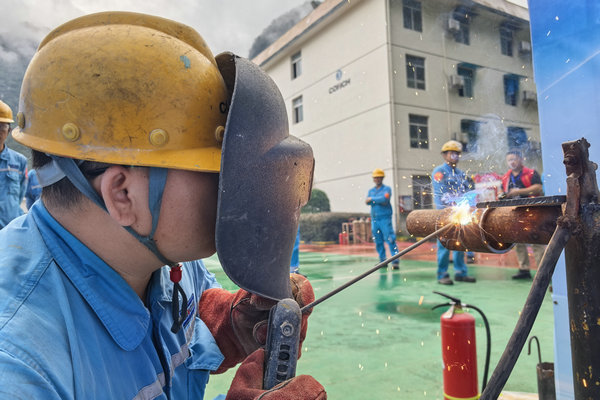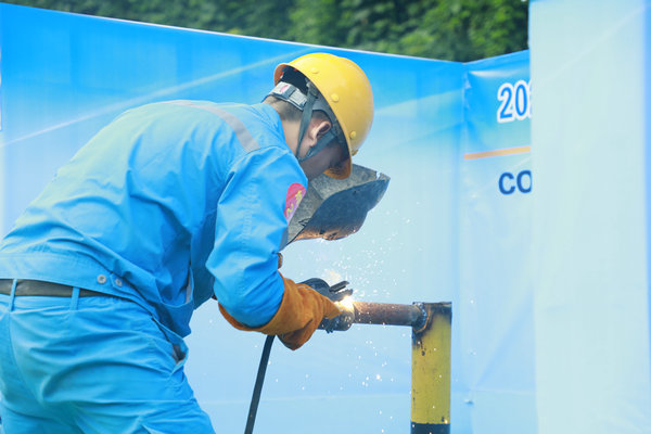 焊接與氧割操作賽區(qū),弧光閃爍,焊花四濺。選手們全神貫注,手持焊槍,穩(wěn)穩(wěn)地對(duì)準(zhǔn)工件接口。面罩下,是他們銳利而專注的眼神。這不僅是力量與技巧的結(jié)合,更是耐心與經(jīng)驗(yàn)的沉淀,每一朵焊花都在雕琢著“鋼鐵裁縫”追求極致的匠心。