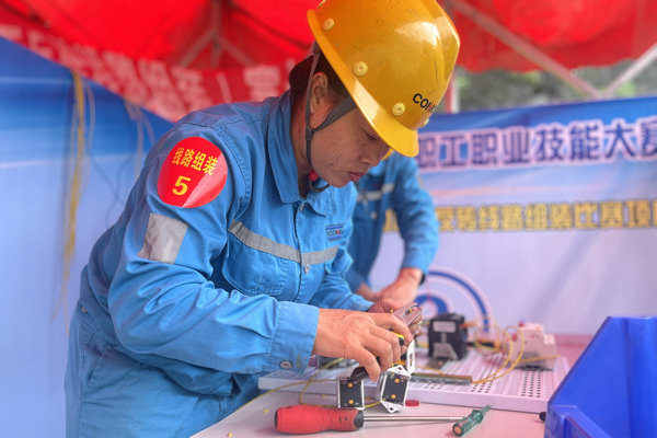電氣線路組裝賽場(chǎng),看似平靜卻充滿了緊張的氣息。選手們面對(duì)復(fù)雜的電氣元件和線路圖,沉著冷靜。一位女電工手指翻飛,剝線、接線、固定,動(dòng)作行云流水。紅、綠、黃各色導(dǎo)線在她手中仿佛被賦予了生命,精準(zhǔn)地連接在接觸器、繼電器和端子之間。