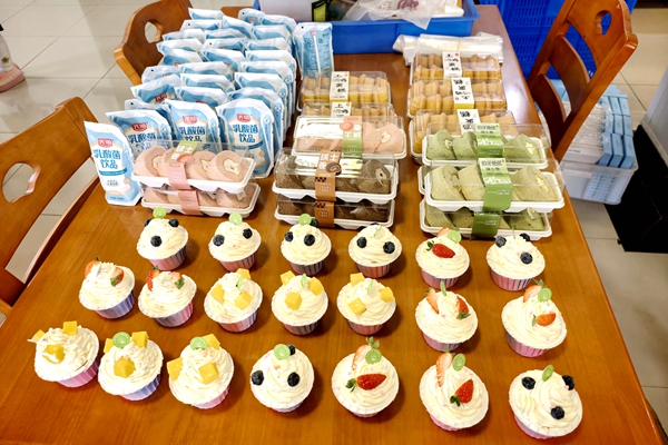制作間隙,孩子們興奮地品嘗著準(zhǔn)備的小點心,紙杯蛋糕、餅干、瑞士卷、酸奶等琳瑯滿目,歡聲笑語中更添一份童趣與滿足。