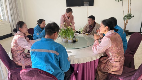 這份對(duì)“年”的認(rèn)真和期盼,很快勾起滿室共鳴。從牧區(qū)來的措姆,說起她家鄉(xiāng)的新年,臉上都是笑:“過年前,我阿媽會(huì)花好多心思準(zhǔn)備‘切瑪’(五谷斗),里面裝好糌粑、麥粒,插上青稞穗和酥油做的花,看著就歡喜,寓意豐收。除夕晚上吃‘古突’才熱鬧呢,面團(tuán)里藏著鹽巴、辣椒、羊毛,誰(shuí)吃到什么,就預(yù)示他新一年的脾氣或運(yùn)氣,大家互相猜,笑話能笑一整晚!”她講得手舞足蹈,描述鮮活熱烈,草原的奔放歡騰順著話音帶到了同事面前。來自四川的漢族同事小劉也忍不住分享:“這時(shí)候,我家也該熏臘肉了,滿院子都是煙煙火火的香氣,還要寫春聯(lián)、守歲,桌上總有一大盤吃不完的菜,叫‘年年有余’!”
