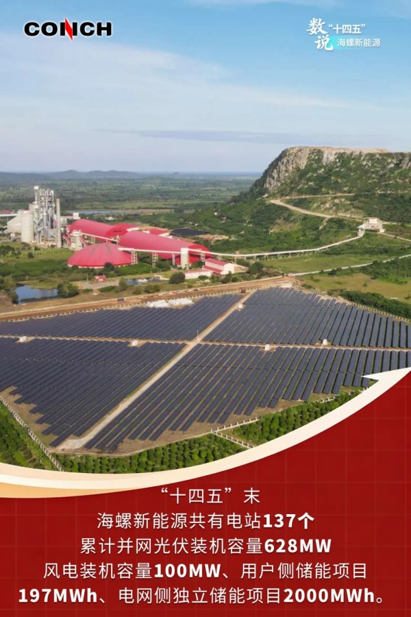 安徽海螺新能源有限公司是海螺水泥全資子公司,成立于2018年。作為海螺集團“一基五業(yè)”的重要組成部分,該公司牢牢把握“零碳園區(qū)方案提供商+清潔能源供應(yīng)商”的定位,在“十四五”時期加快發(fā)展步伐和技術(shù)研究,在新能源裝機規(guī)模、品牌影響力、產(chǎn)業(yè)鏈延伸等方面均實現(xiàn)了突破。今天我們通過一組海報,