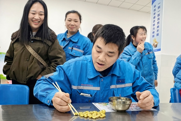 “財(cái)源廣進(jìn)·眼疾手快夾‘元寶’”活動(dòng),三人一組限時(shí)比拼,參與者需用筷子夾起滑潤的金色“元寶”,并快速移至碗中。游戲中既有穩(wěn)中求快的策略,也有巧勁與耐心的考驗(yàn)。隨著計(jì)時(shí)開始,現(xiàn)場不時(shí)傳來歡笑與鼓勵(lì)聲,無論是成功夾起時(shí)的喜悅,還是“元寶”滑落時(shí)的輕嘆,都讓這場象征“招財(cái)進(jìn)寶”的傳統(tǒng)趣味活動(dòng)顯得格外生動(dòng)熱鬧。